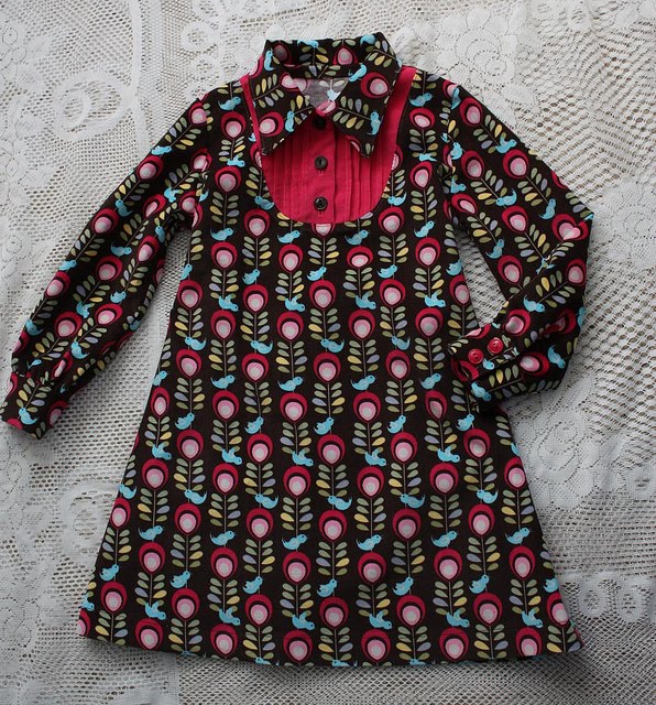Pattern: Ottobre 6/2010, design #10, "Eleanor" dress; A-line dress with long sleeves gathered into wide cuffs; big pointy collar; yoke with tucks.